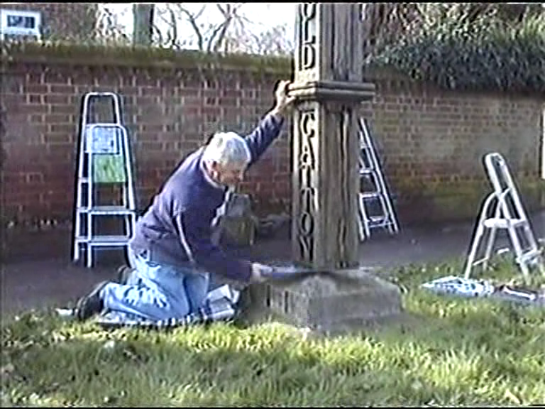 Sawing off the wooden post
